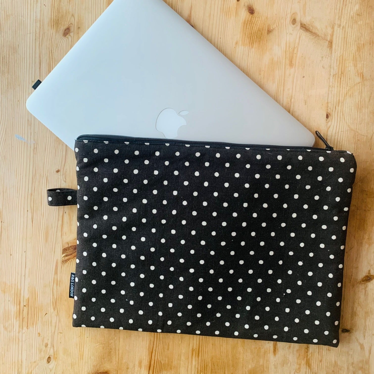 Handmade Laptop Sleeve with soft padding – Cupocino Polka Dot, 100% Linen, Magnetic Closure (Copy)